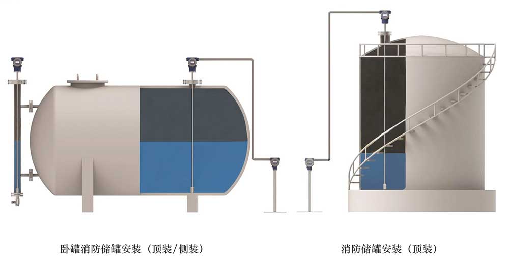 安裝要求:一般采用標準法蘭或螺紋安裝于罐頂,特殊工況選擇側側垂直安裝,為方便調試,儀表安裝建議在有平臺的地方。
